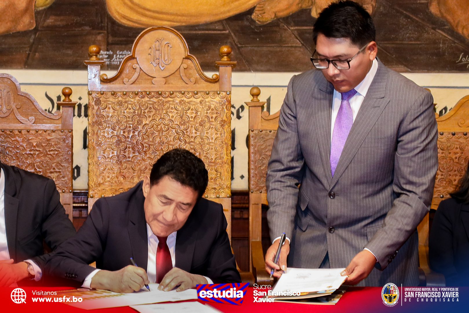 La Universidad de San Francisco Xavier y el Servicio Departamental de Educación (SEDUCA) firmaron este martes el convenio de cooperación interinstitucional dirigido a fortalecer la extensión universitaria, promover prácticas profesionales en unidades educativas inclusivas y la digitalización de trámites académicos.