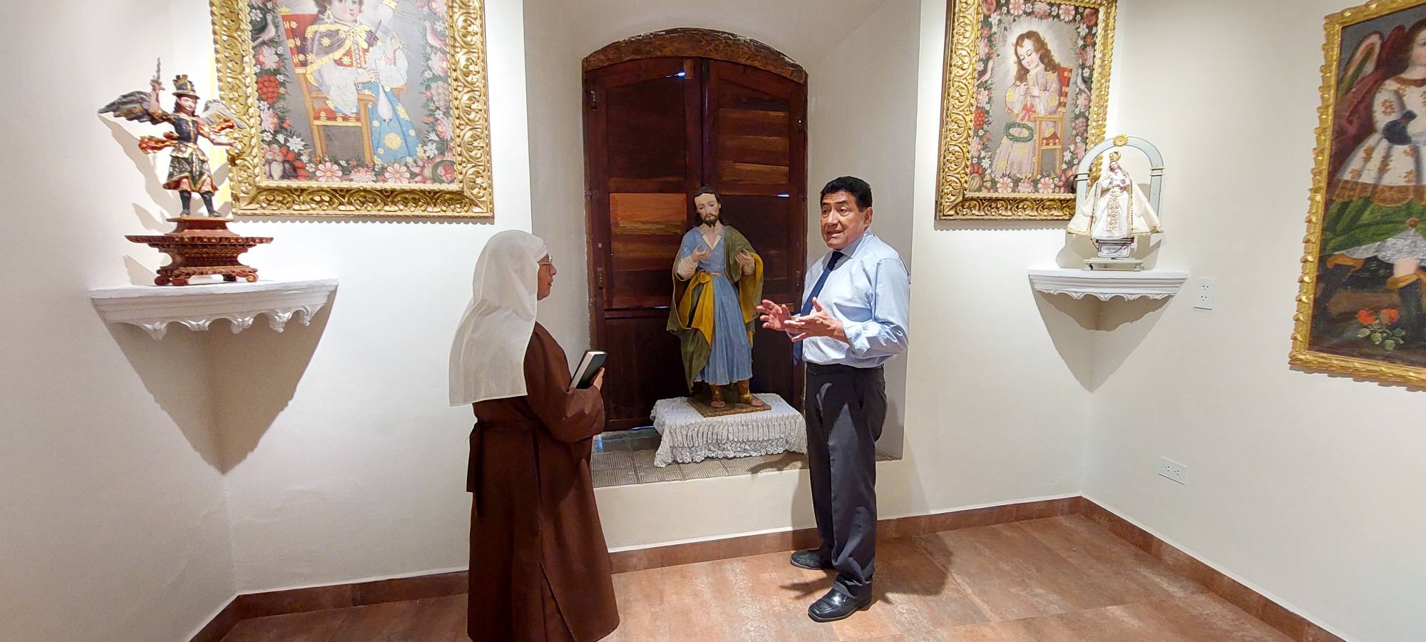 En el componente artístico, se restauraron lienzos del nacimiento del Niño Jesús, así como portezuelas y elementos dorados. Para esta labor, se contó con dos restauradores del equipo del Museo Colonial Charcas, además de una especialista en dorados que contribuyó a resaltar el valor estético y simbólico de las obras en su contexto devocional.