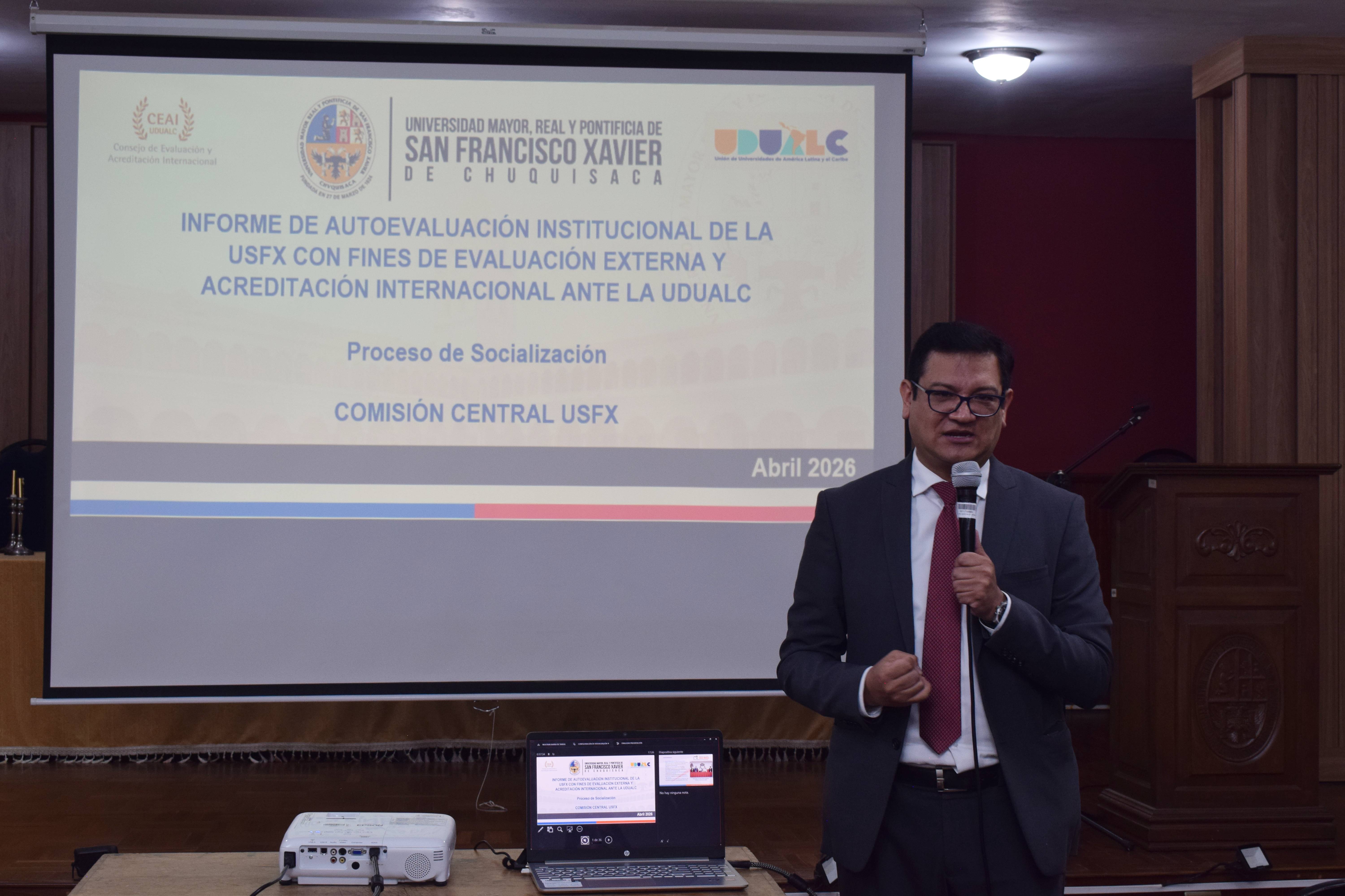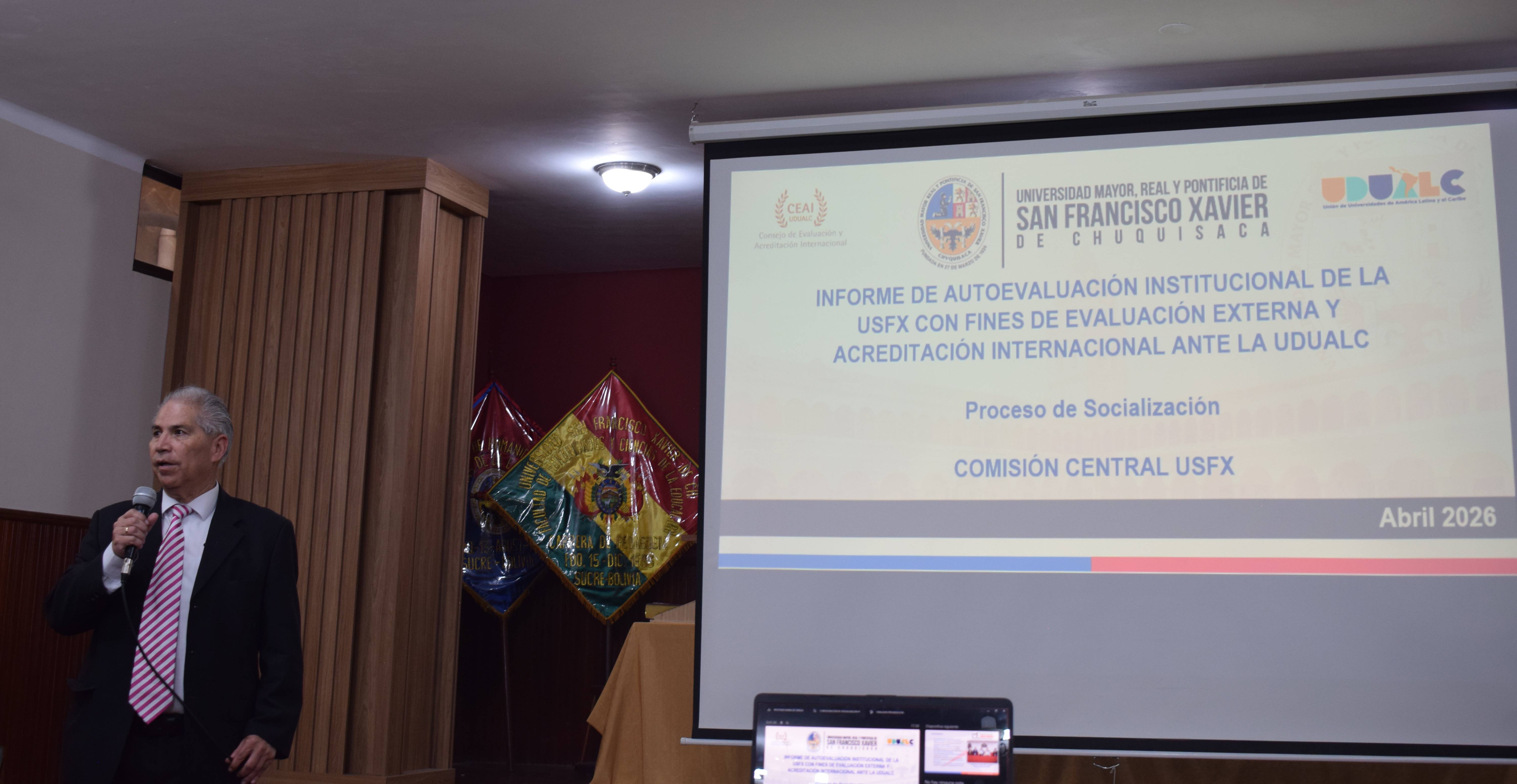 Socialización del informe de autoevaluación de la USFX con fines de acreditación institucional ante la UDUALC